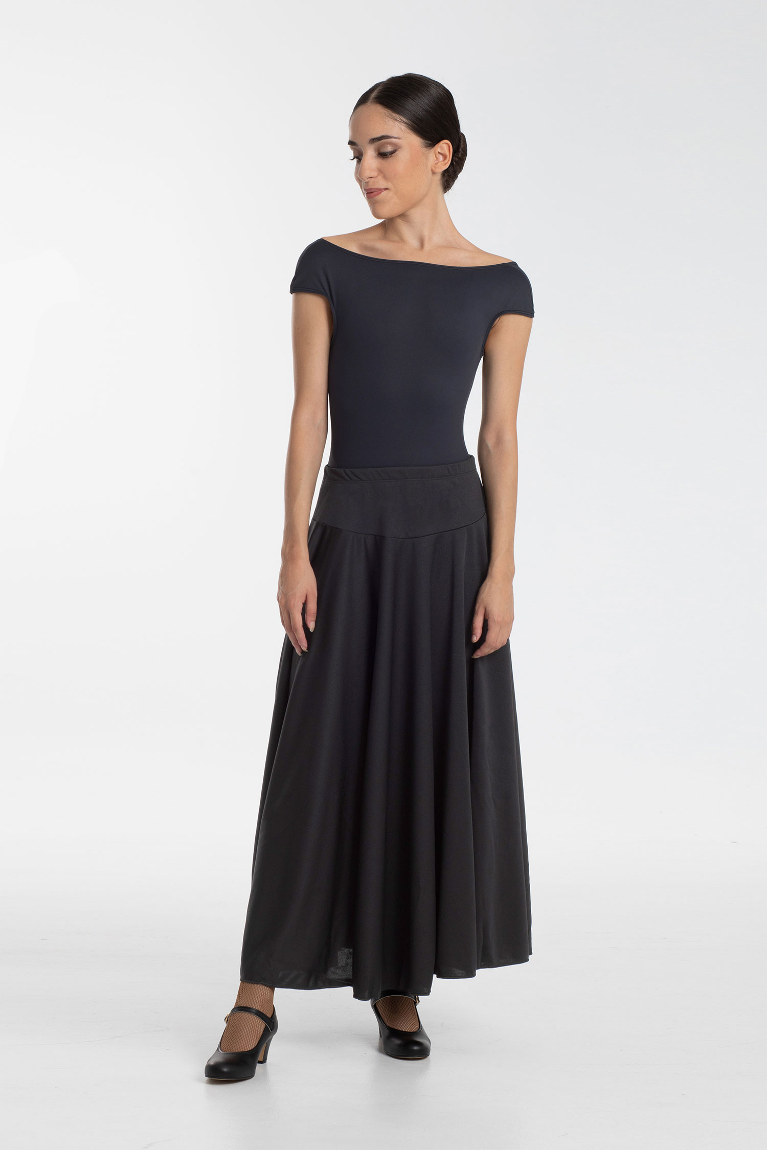 Falda larga  de ensayo de flamenco con vuelo de capa entera.