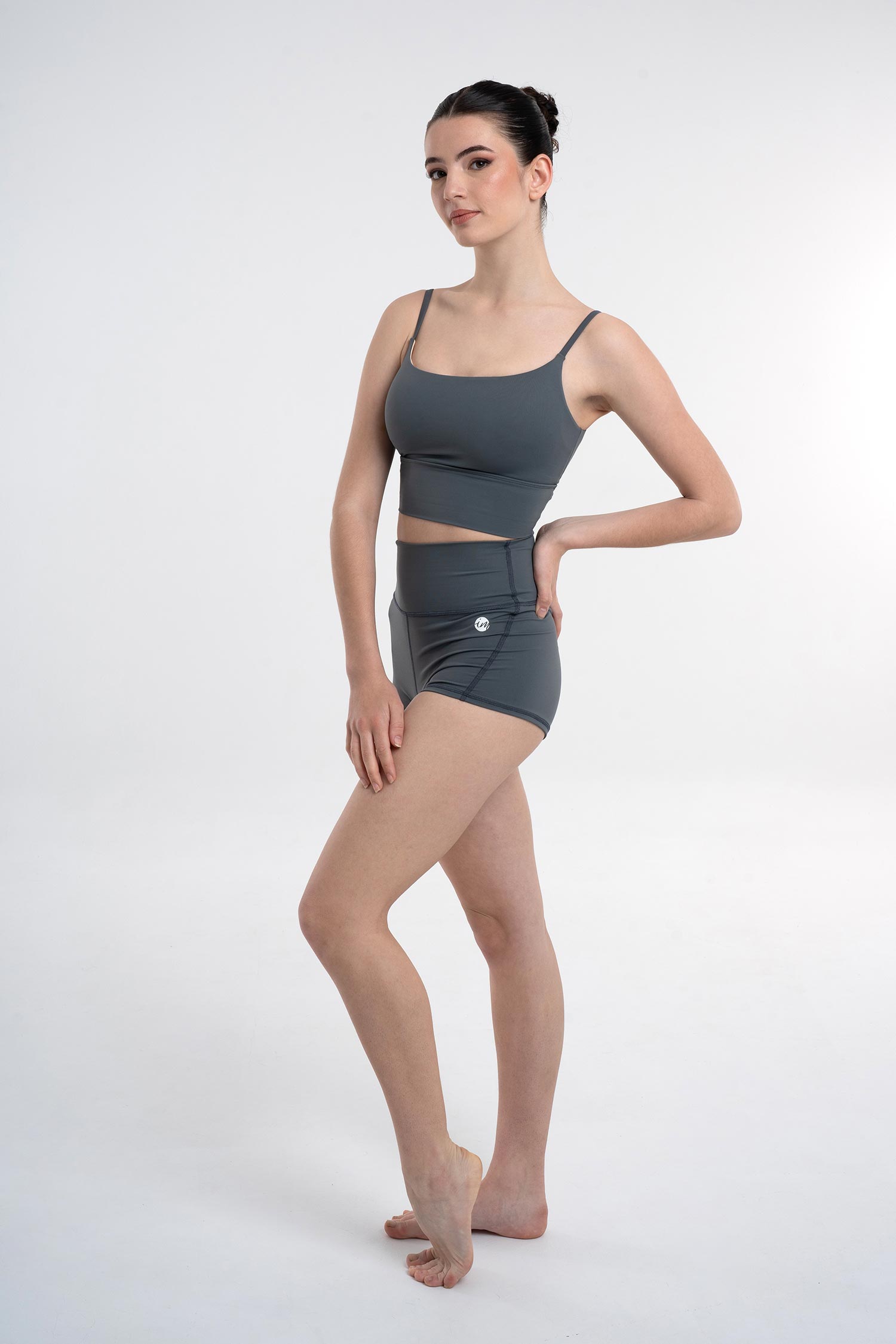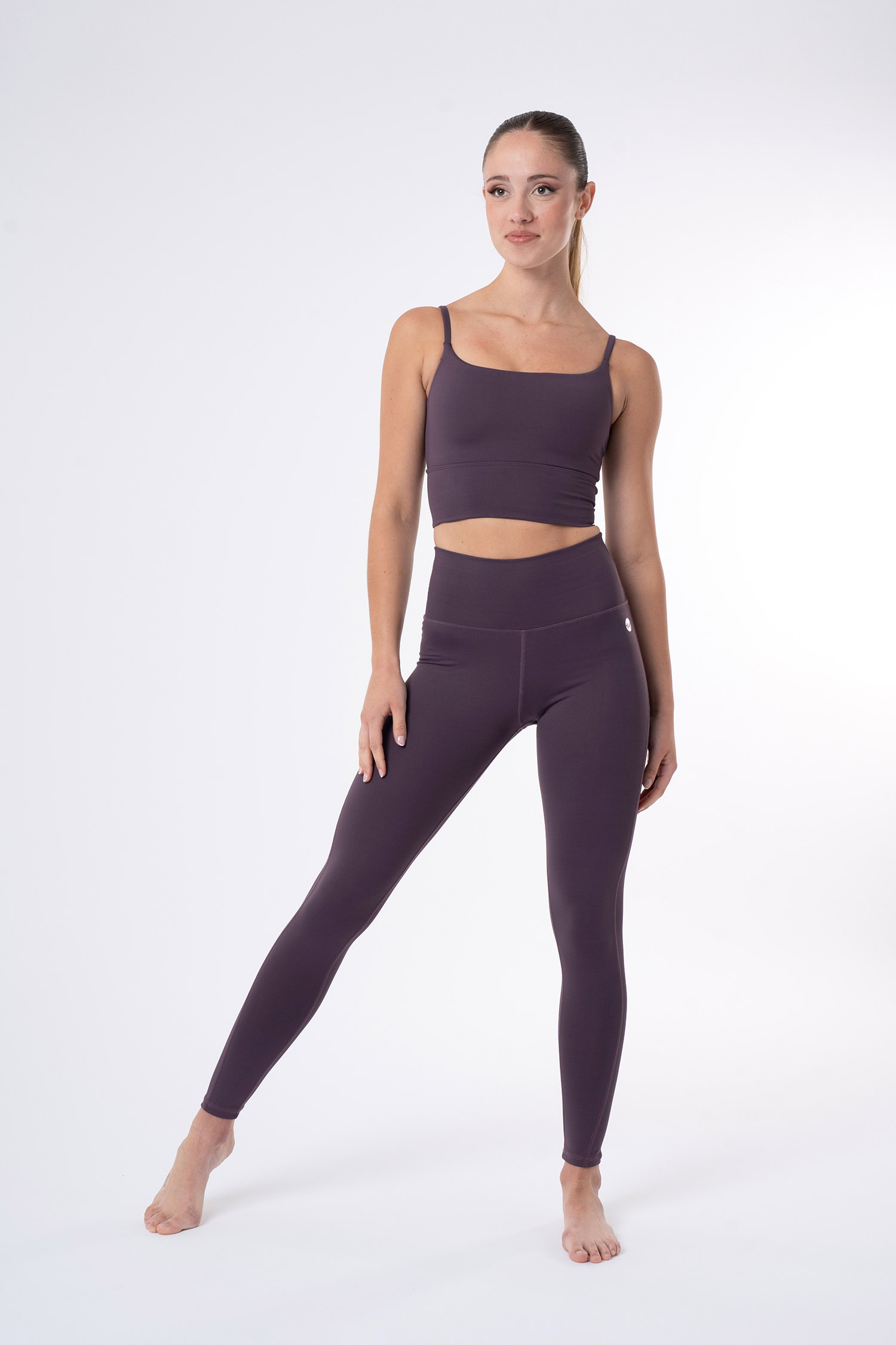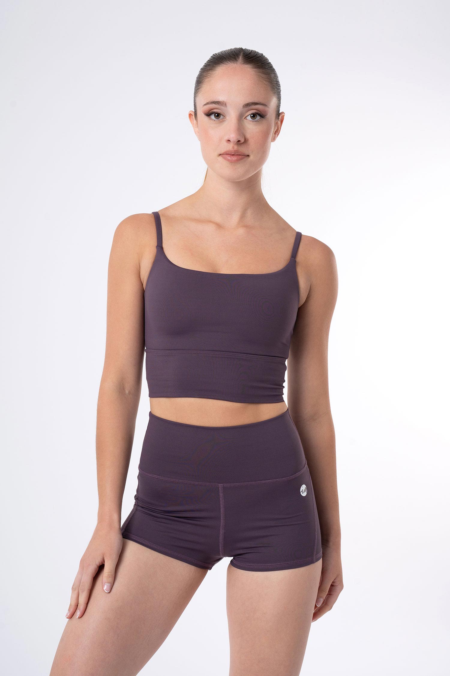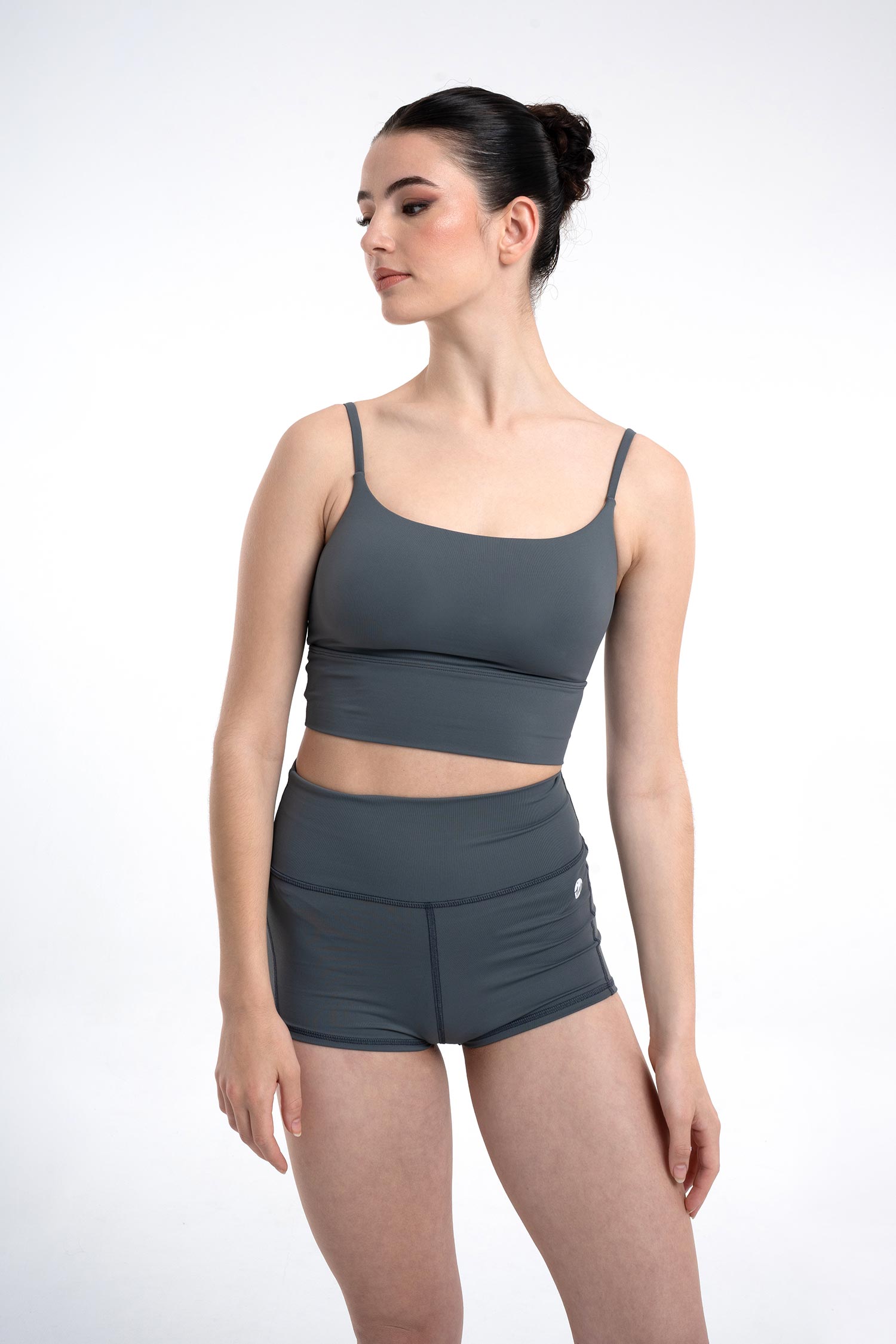Top de tirante fino con cinturilla ancha y copas extraíbles. Escote y espalda circular con forro de tacto suave.