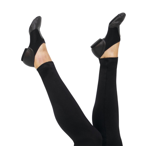 Zapato con tecnología Capezio jazz Glove imitando la forma natural del pie que proporciona un ajuste más firme al arco. Sistema de flujo de aire transpirable en la parte inferior que reduce la temperatura del pie. Fabricado en cuero y neopreno en la parte superior con suela de gamuza.
